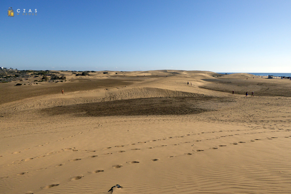 Wróćmy jednak do meritum – latarnia morska widoczna jest już z daleka i na prawdę jest bardzo ładna. Podczas naszej wizyty dół był otoczony rusztowaniami przez co nie można było podejść całkiem blisko, ale i tak nie popsuło to wrażenia. Wybudowana została w XIX wieku i ma 56 metrów wysokości co czyni ją drugą najwyższą latarnią na Wyspach Kanaryjskich. Szkoda jedynie, że nie można wejść na górę – widoki byłyby zapewne piękne. Kiedy już ponapawacie się widokiem latarni warto przespacerować się plażą w kierunku wschodnim, gdzie zaczynają się wydmy – Dunas de Maspalomas. Wydmy ciągną się od Maspalomas aż po sąsiadujące Playa del Ingles, zajmują powierzchnię ponad 400 ha i uznawane są za rezerwat przyrody. Trzeba przyznać, że takie połacie piasku robią duże wrażenie, szczególnie gdy gdzieniegdzie zza wydmy wychyla się nieśmiało latarnia w Maspalomas 😉 .